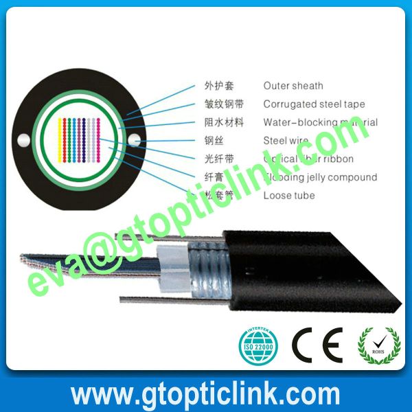 Metal Strength member, Loose tube stranded type, gelly filled, PSP- Polyethylene(PE)sheath, Outer door fiber ribbon optical fiber cable for telecommunication
